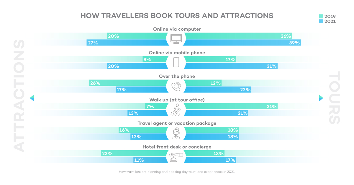 As digitisation increases, so does online competition for tours, activities and attraction operators. While it is becoming harder to stand out in the crowd, Arival’s Distribution Landscape report shows that it is more important than ever to try, especially with a 12% increase for attractions and a 14% increase for tours in mobile bookings.