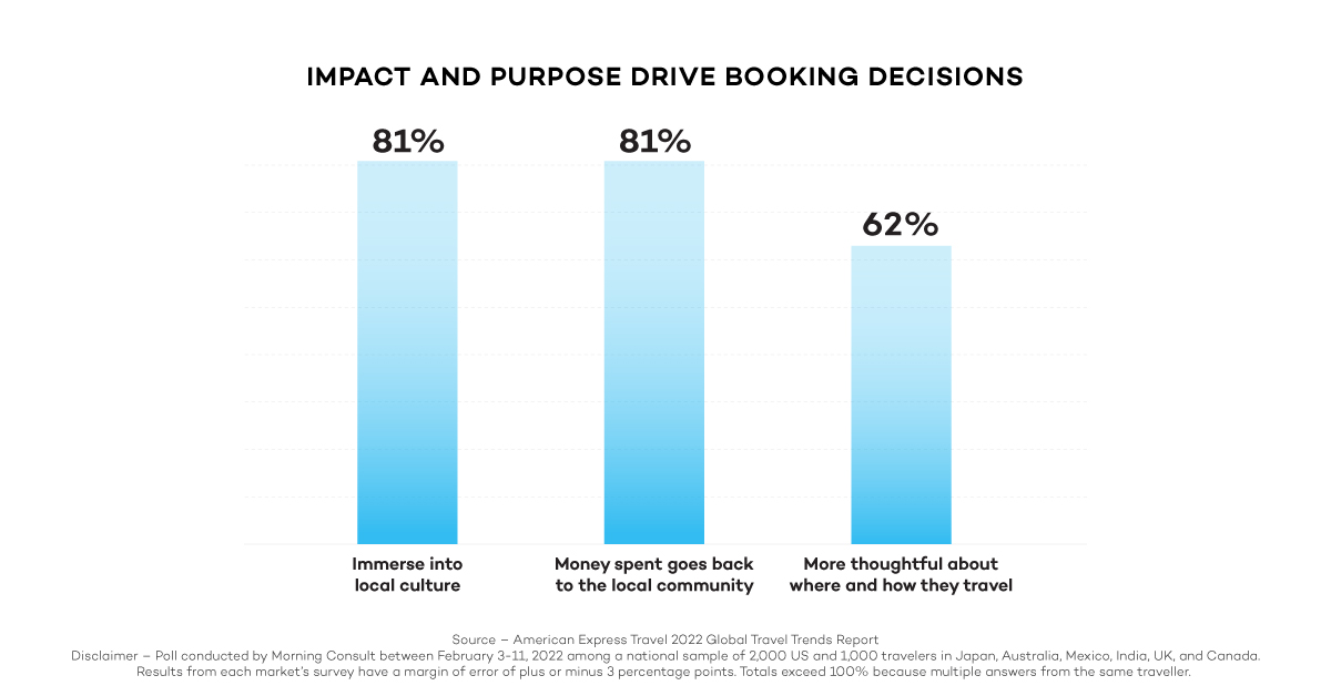 According to the American Express travel report, 81% said they want the money spent on travelling to return to the local community while 62% are more thoughtful about where and how they travel.